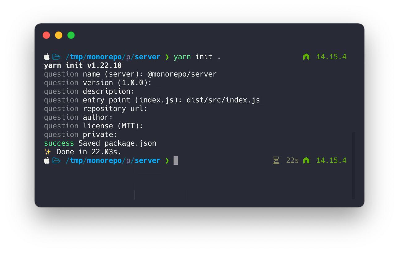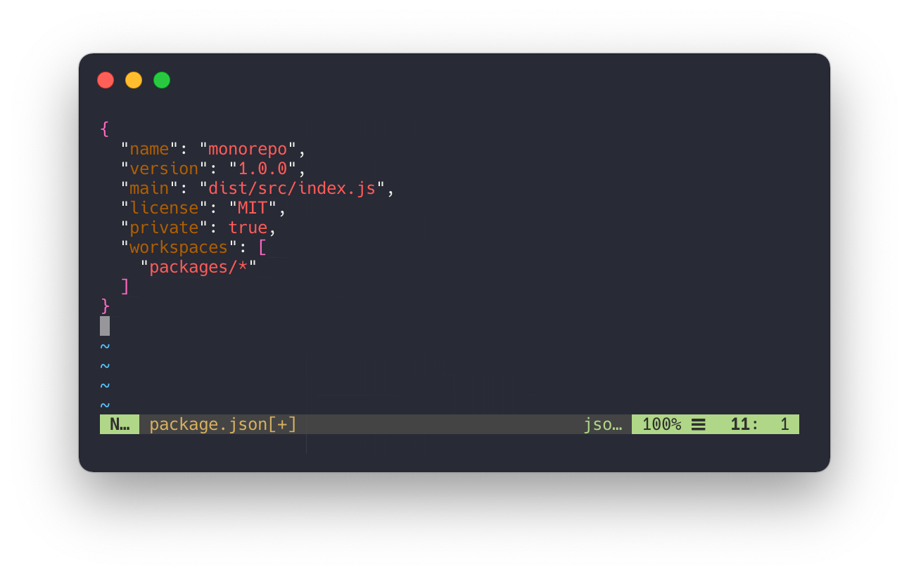 Once we created the directories, let's modify our main package.json file a little bit to be compatible with yarn workspaces: