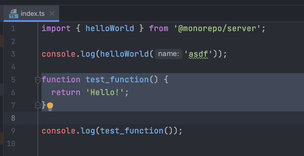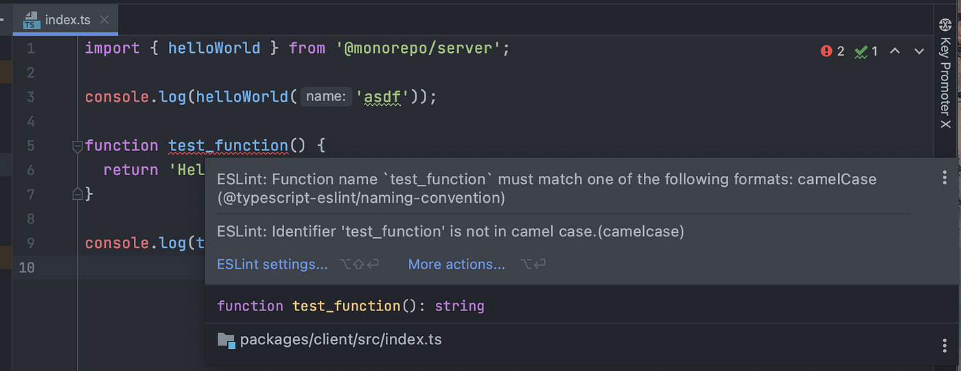 }Now we can write a test function to see if ESLint is functioning properly in WebStorm: