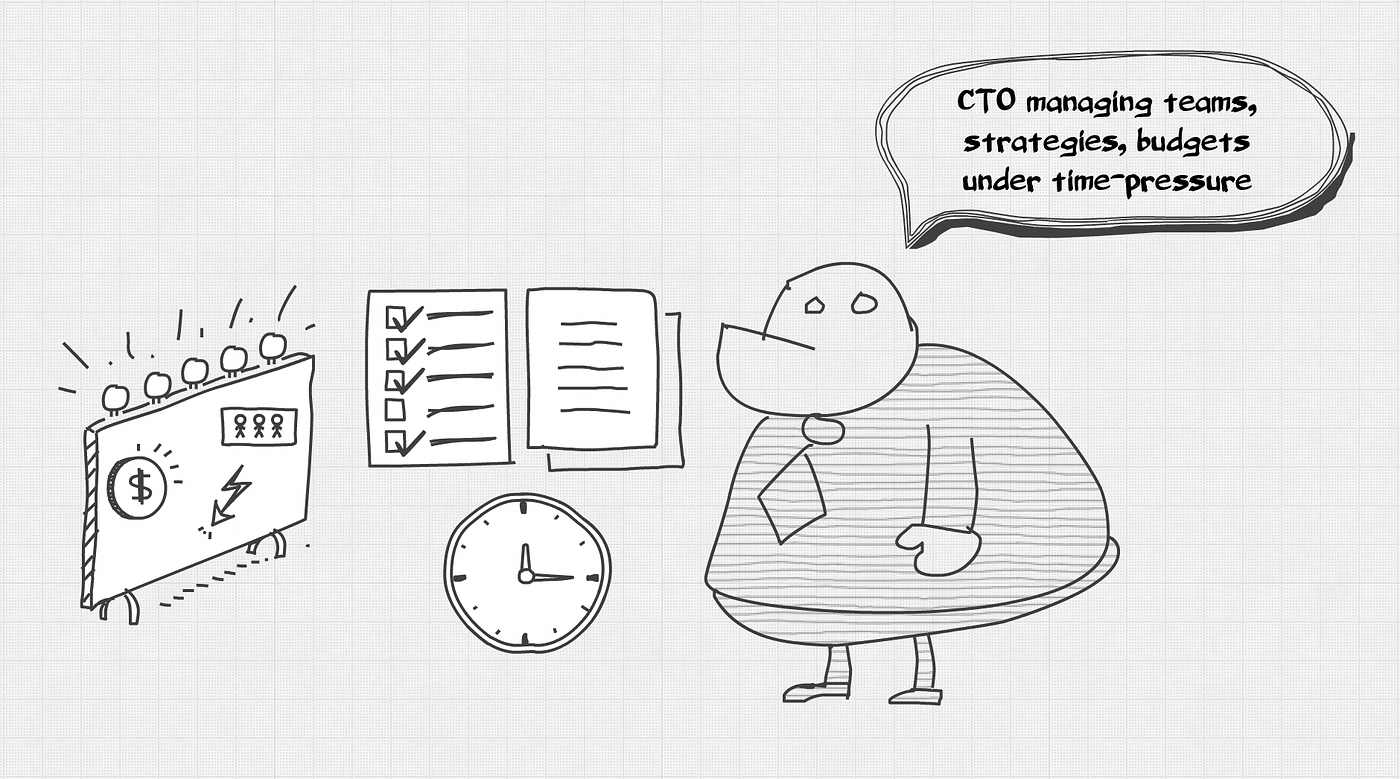 - Board and investor relations — presenting the technology strategy to the board, answering technical questions from investors